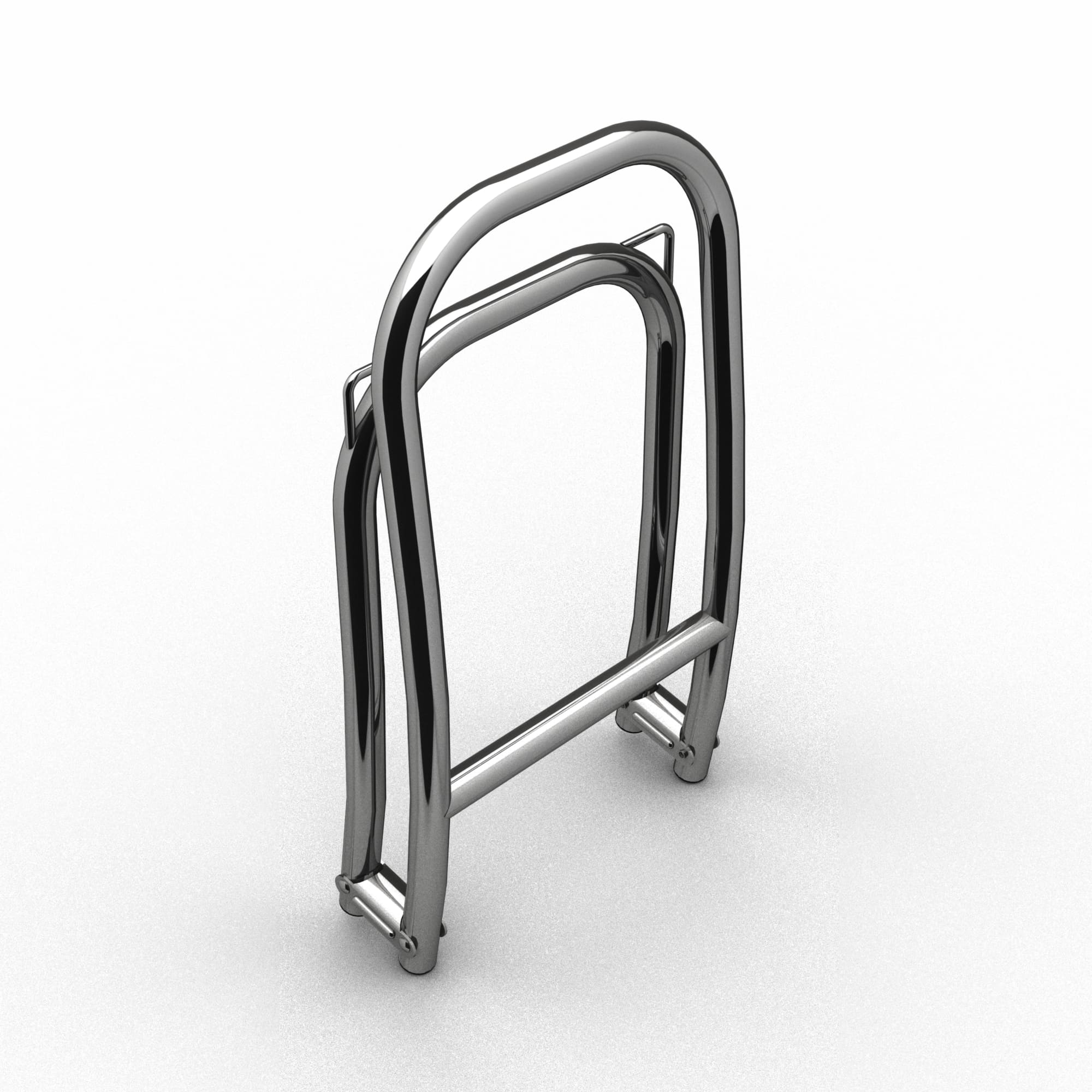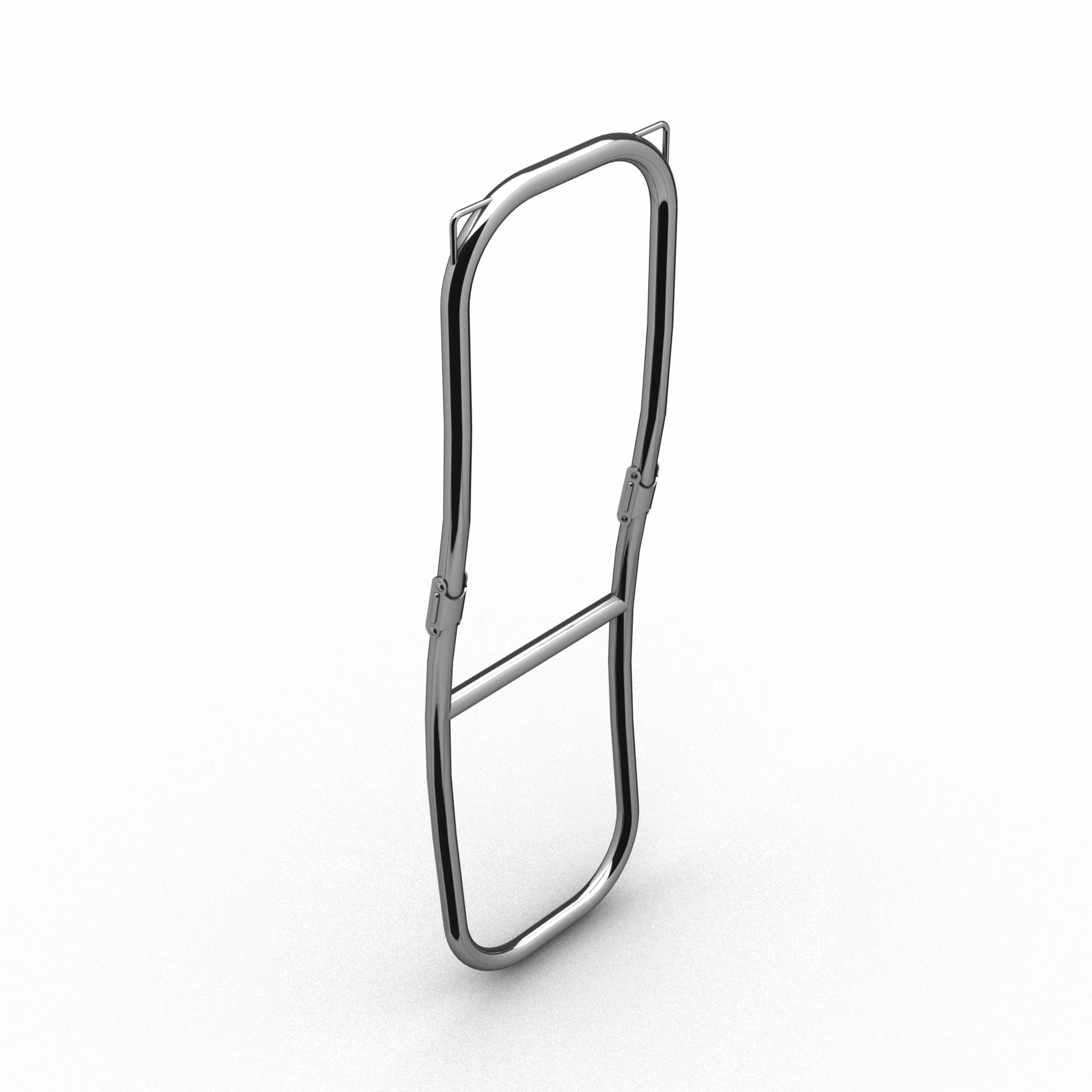 Scala per barche laterale in tubo Ø25 con fissaggio a cinghia in acciaio inox AISI 316L lucidato a specchio per barche e gommoni. La scala bagno 2043 ha 2 gradini in inox tubo Ø25.