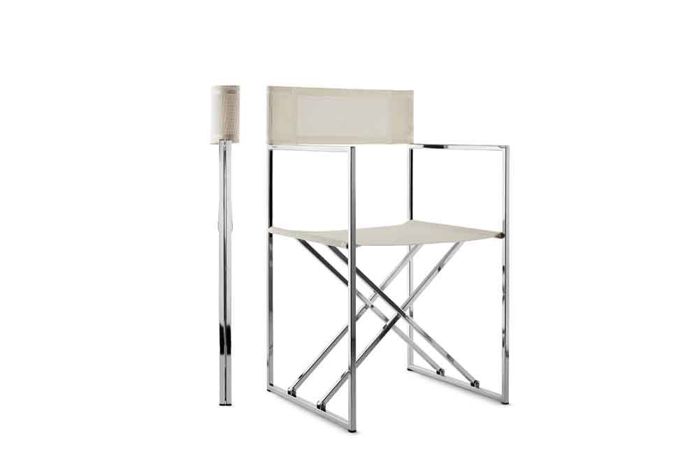 The director’s folding chair 35 celebrates the years of experience of our Comapny and reminds the millimeters occupied once folded. Elegance and lightness feature this design chair that has a hand-polished 316L stainless steel tubular frame and high-strength welded canvas guaranteed for outdoor use. The fabric is totally removable and can be customized by the chromatic point of view. The technical features of this chair make it usable in extreme outdoor environments as a boat cockpit as well as in the most refined interiors. A component of contemporary furniture that brings a touch yachting to any setting.