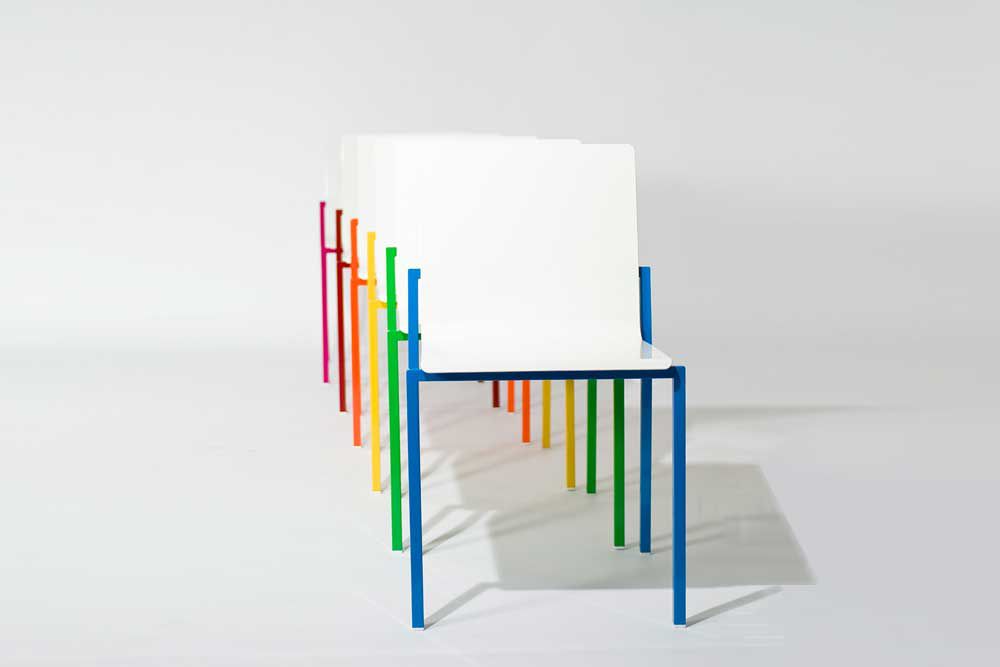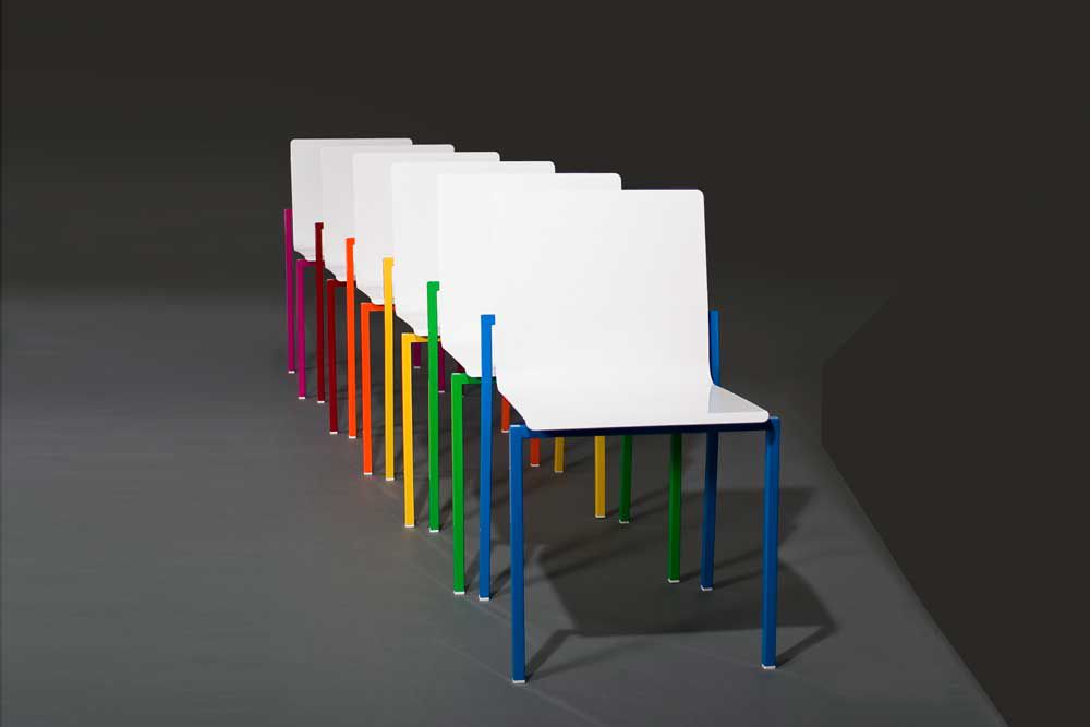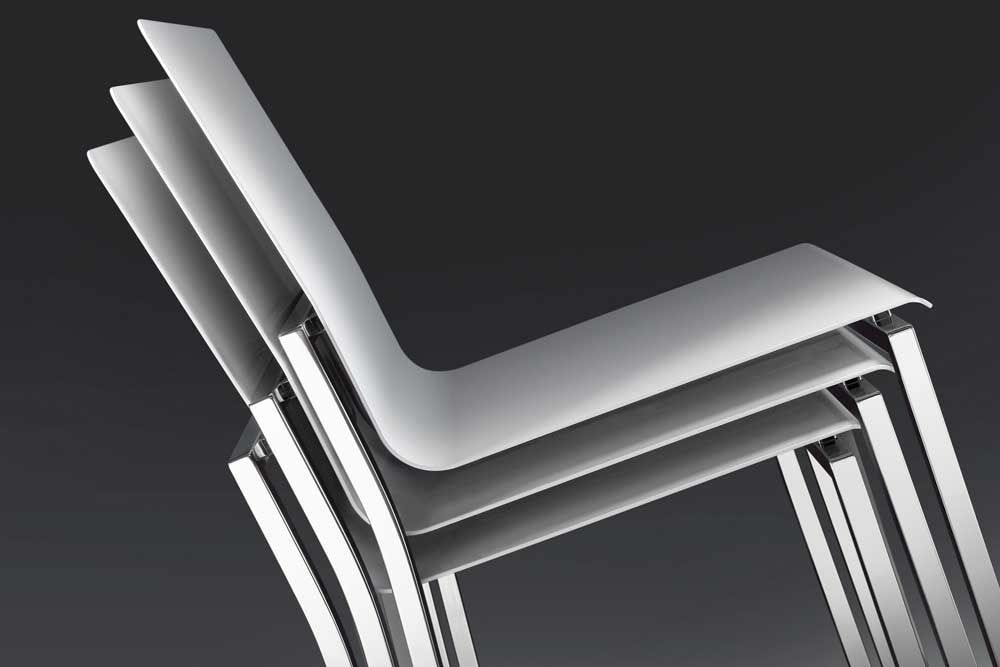 Crocetta chair, light but extremely resistant, is easily stackable to allow the transportation and storage. The seat in aluminium sheet can be declined according to any aesthetic needs choosing the chromatic variant among the existing RALs. The powder painting allows the use even outdoors, as it’s previously treated with a process that prevents the material from corrosion. The frame can be chosen in the version with hand polished stainless steel or powder-painted steel. Clear tribute to the city of Milan home base of the company since 1980, the Linea3 collection which Crocetta is part of metaphorically re-lives some stops of the famous underground line that runs through the city from north to south.