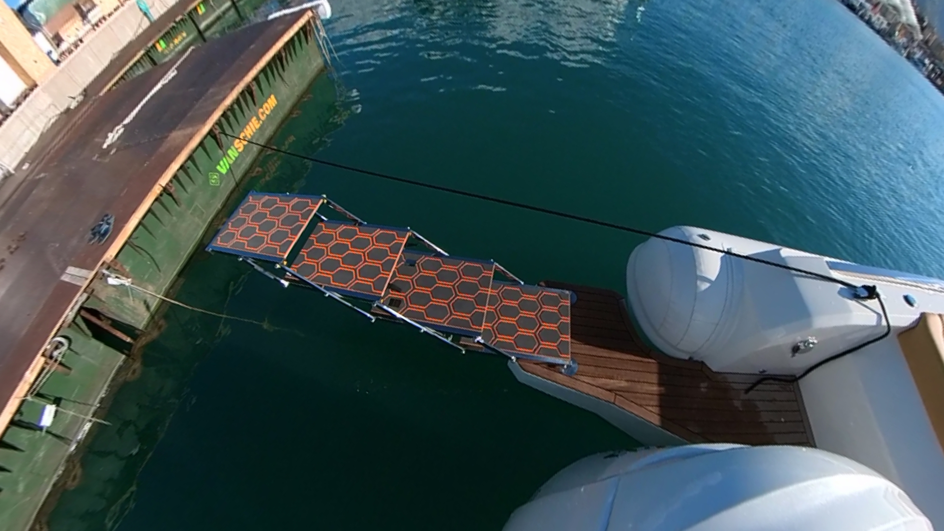 – a set of removable ropes which, once quickly attached to the side of the gangway, allow it to be opened and closed from the dock, keeping the boat always safe when moored. Thanks to this solution, the manual gangway offers the same benefits as an electric gangway, while remaining light, simple, and maintenance-free. The product’s video section shows how this system works.