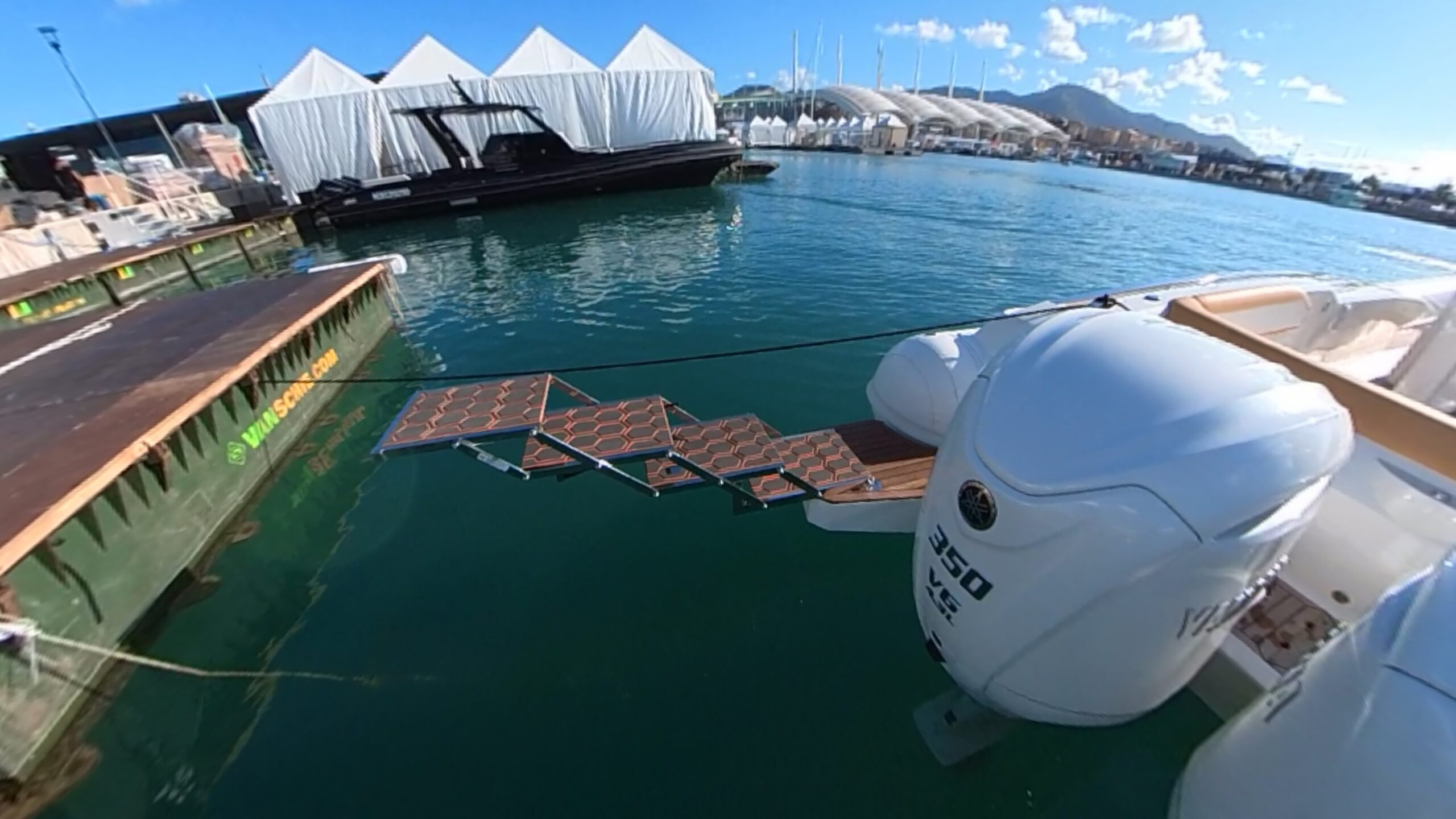 – a rectangular-tube safety stanchion that eases the first step from the dock onto the gangway, making it more reassuring. The stanchion can be installed either on the right or left side, and those who wish can purchase a second optional stanchion (code 123_CND) to have support on both sides.