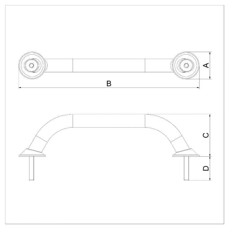 Boat grab handle made of mirror-polished AISI 316L Ø22 stainless steel tube with Ø45 welded bases and M8x40 threads. 2196