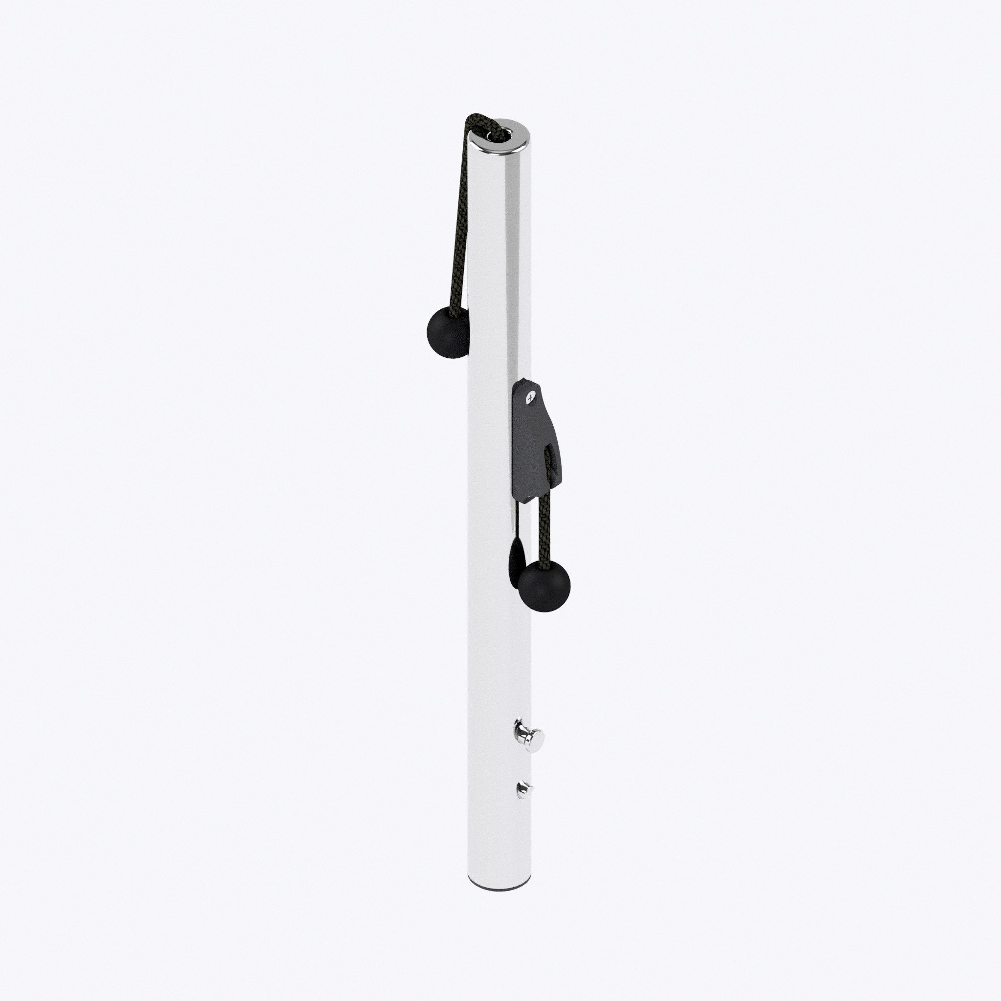 Deck fastening system: the pole has a release button to remove it from the base and allows three locking positions where the padlock symbol is engraved.